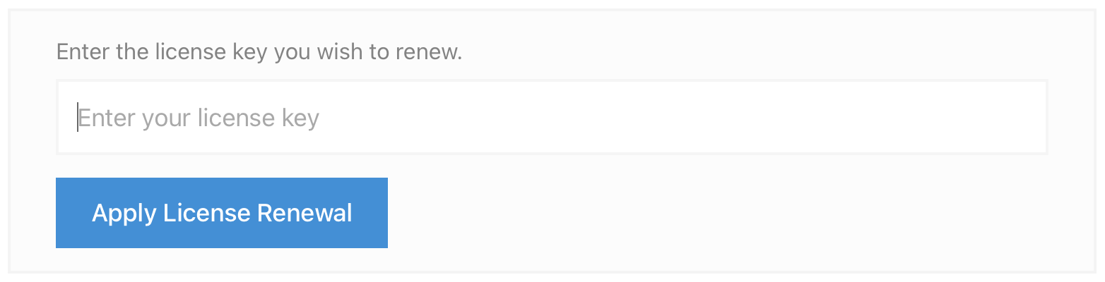 If renewals are enabled, there will be a section added to your checkout screen that allows customers to enter an existing license key in order to renew it: