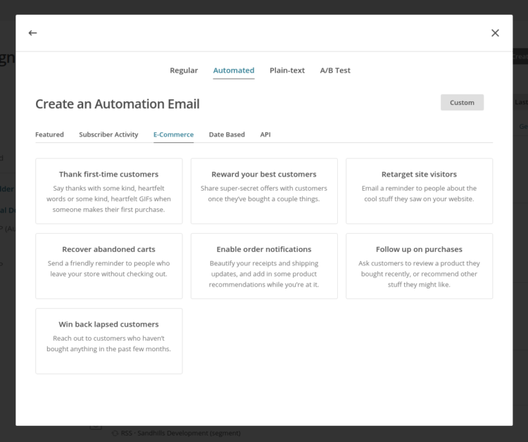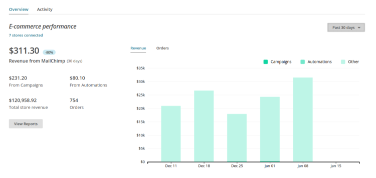 Along with the revenue statistics enabled through this new version, it also adds support for many of MailChimp’s eCommerce automation tools. These include options to: