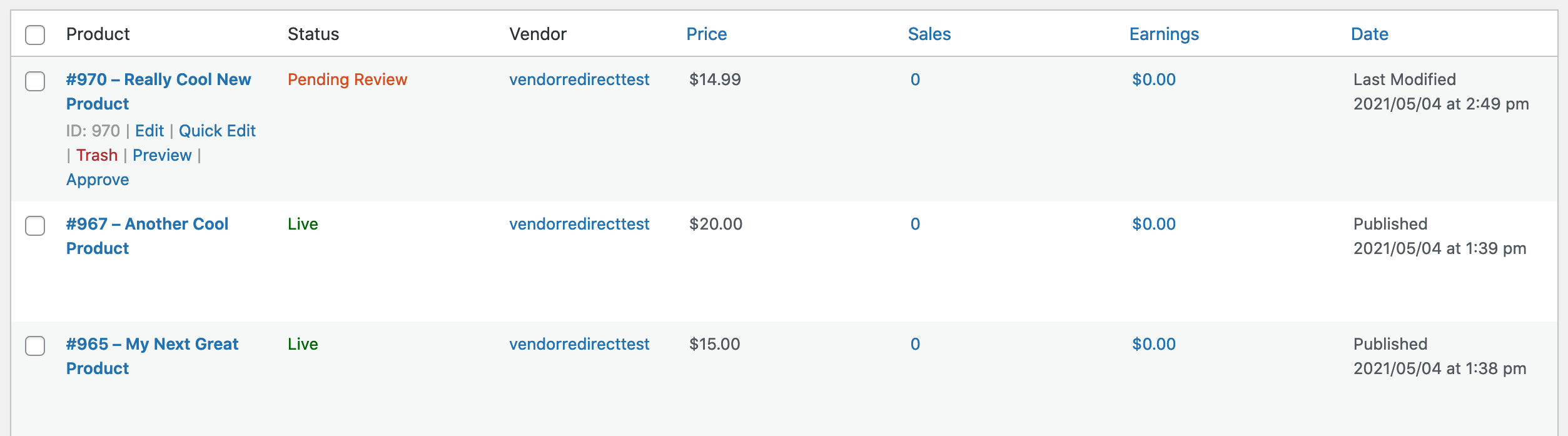 With Frontend Submissions the site owner can allow Vendors to add new products freely without review, or the site owner can require that each submission be held for moderation.