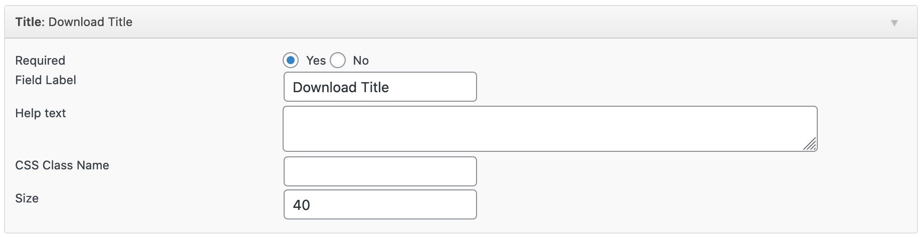 Help Text: This is text that will appear under the title (similar to a sub-heading). This would be used to describe in more detail what information you’re asking for in the field.