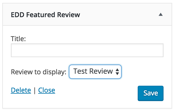 This widget allows you to select a single review from any Download and show it in a widget. Here’s a screenshot of the admin interface: