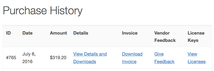 If customers buy a vendor’s product, they can leave feedback for the vendor. A link will be displayed on the customer’s Purchase History, which they can follow to supply feedback to the vendor. Links will only appear for products created by a vendor.