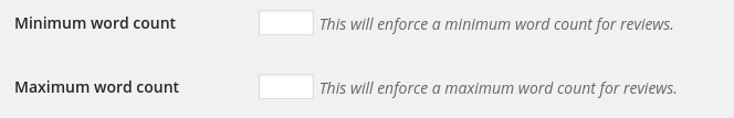 A three-word review doesn’t convey much information. By the same token, a 1500-word review might be better served by its own blog post somewhere else. If you’d like to try to maintain a relative average length, you can use the Minimum word count and Maximum word count fields.