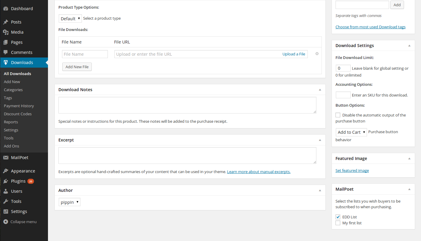 This extension integrates your Easy Digital Downloads store with MailPoet by letting you automatically subscribe customers to specific lists based on what they purchased, and allowing customers to opt themselves into a list during checkout.