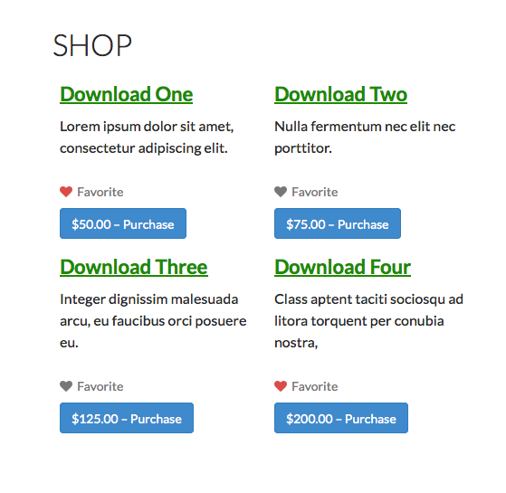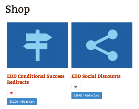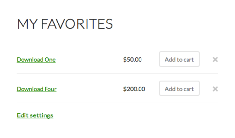 EDD Favorites is a plugin for EDD Wish Lists that allows your customers to “favorite” downloads. With 1 click a user can instantly add, or remove, a download from their favorites.