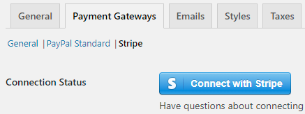 Select the Stripe sub-tab within the Payment Gateways tab, then click the Connect with Stripe button. If you’ve already connected to Stripe with Test Mode disabled, you will have to connect again in Test mode. Once you are connected in both Live and Test Mode, you do not need to re-connect when switching back and forth.