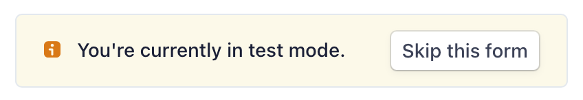 Stripe offers a temporary test account by clicking “Skip this form”. We do NOT recommend this option as it’s best to use an actual account, the same account as your live account. This allows you to configure webhooks and ApplyPay once for both Live and Test Mode. Also, if you are testing Recurring Payments, renewals will not work with a temporary test account.