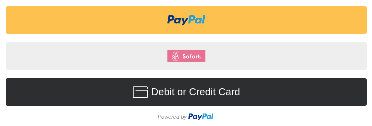 PayPal now supports alternative payment methods in various countries if that’s something you’d like to offer for your customers, such as Sofort, iDEAL, Bancontact, and giropay.