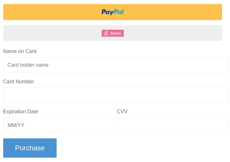 - Alternative payment methods (i.e. Sofort, iDEAL, giropay, etc.)