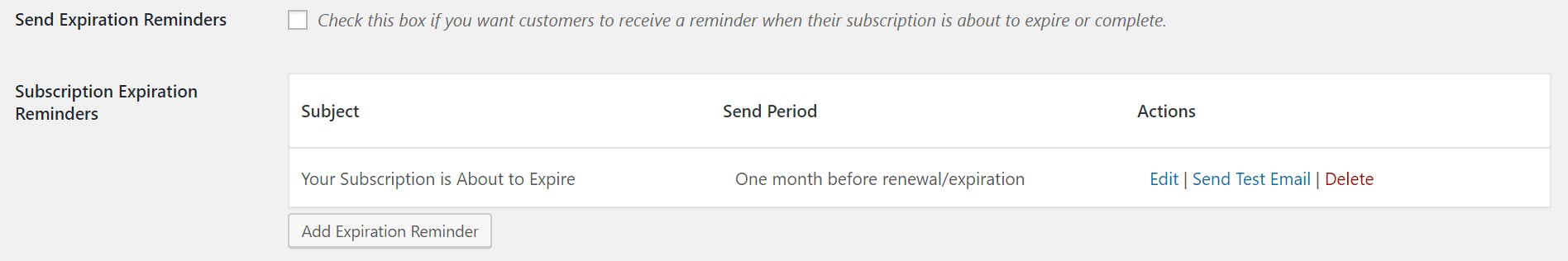 Optionally restrict file downloads of recurring products to just those customers with an active subscription. This way you can ensure customers who cancel their subscription no longer have access to your product downloads until they decide to purchase again or renew.