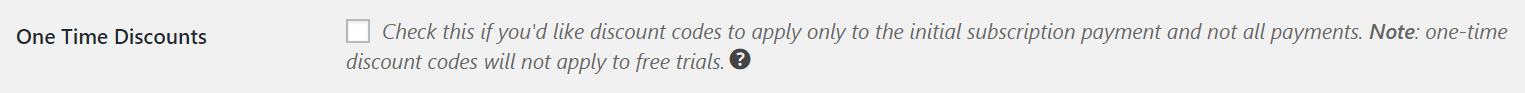 Discount codes can be set up to apply to the initial payment only or to each and every renewal payment.