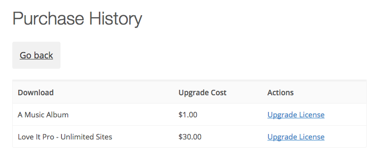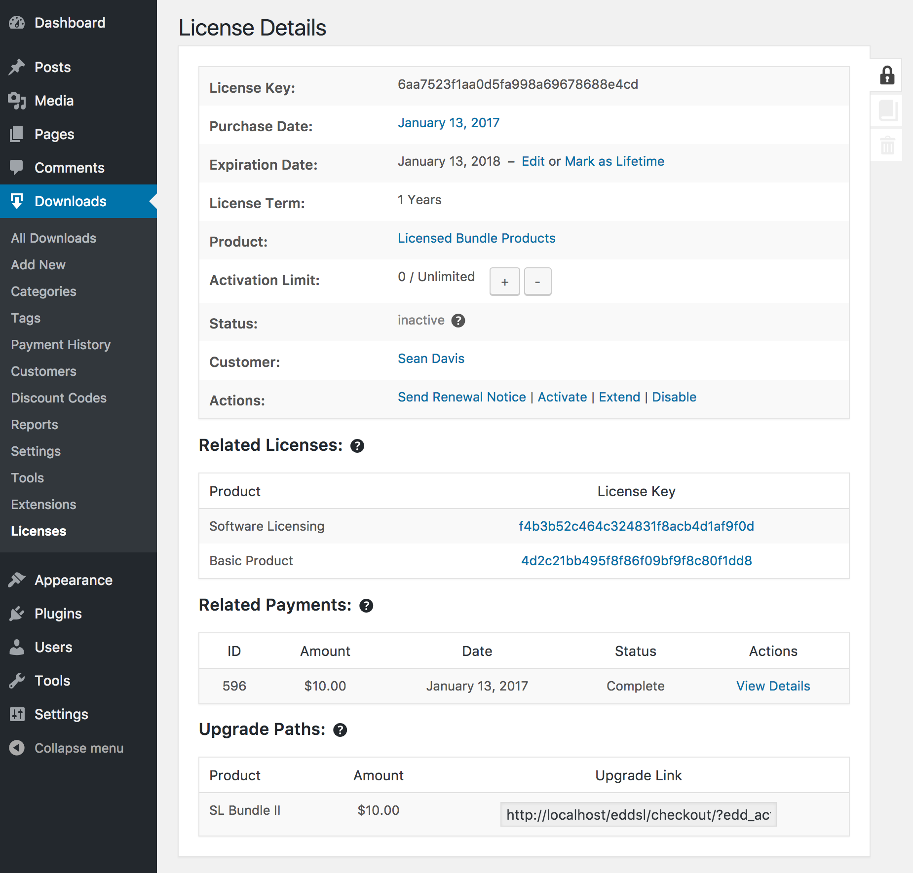 For sites that sell multiple versions of their software, allowing customers to upgrade from one level to the next is important. Software Licensing provides a complete system for creating upgrade paths for customers to upgrade between license levels.