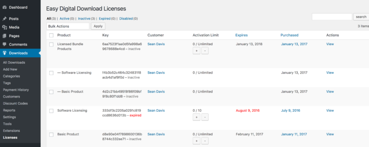 Software Licensing for Easy Digital Downloads provides a complete license key generation, activation, and checking system. It allows you to provide license keys along with your digital products that can then be used to properly license and activate the buyer’s copy of the software. Whether you are selling WordPress plugins, themes, or any other kind of software, including video games and desktop applications, the Software Licensing add-on will become a huge asset for you that also helps to take your business to the next level.