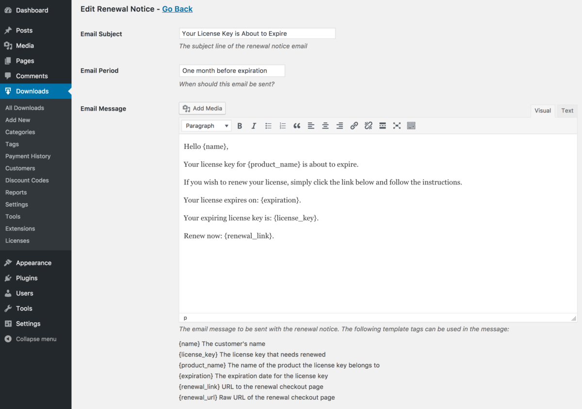 The renewal system is also fully integrated with our Recurring Payments plugin, allowing you to set up automatic renewals with recurring subscriptions.