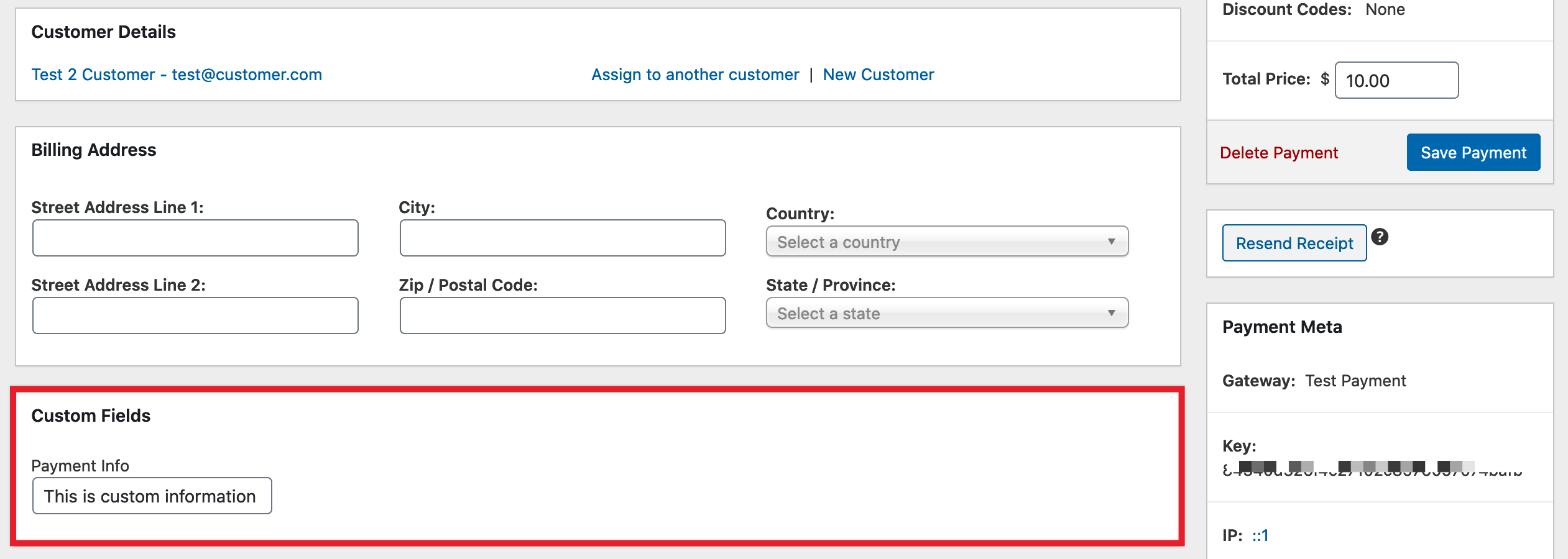 Payment Meta is information about a payment. An example would be quantity. If you’re making a new custom field for information relating to the payment, a field for comments about the product for example, you should store it in Payment Meta. This will make that information visible and editable in the Payment History.