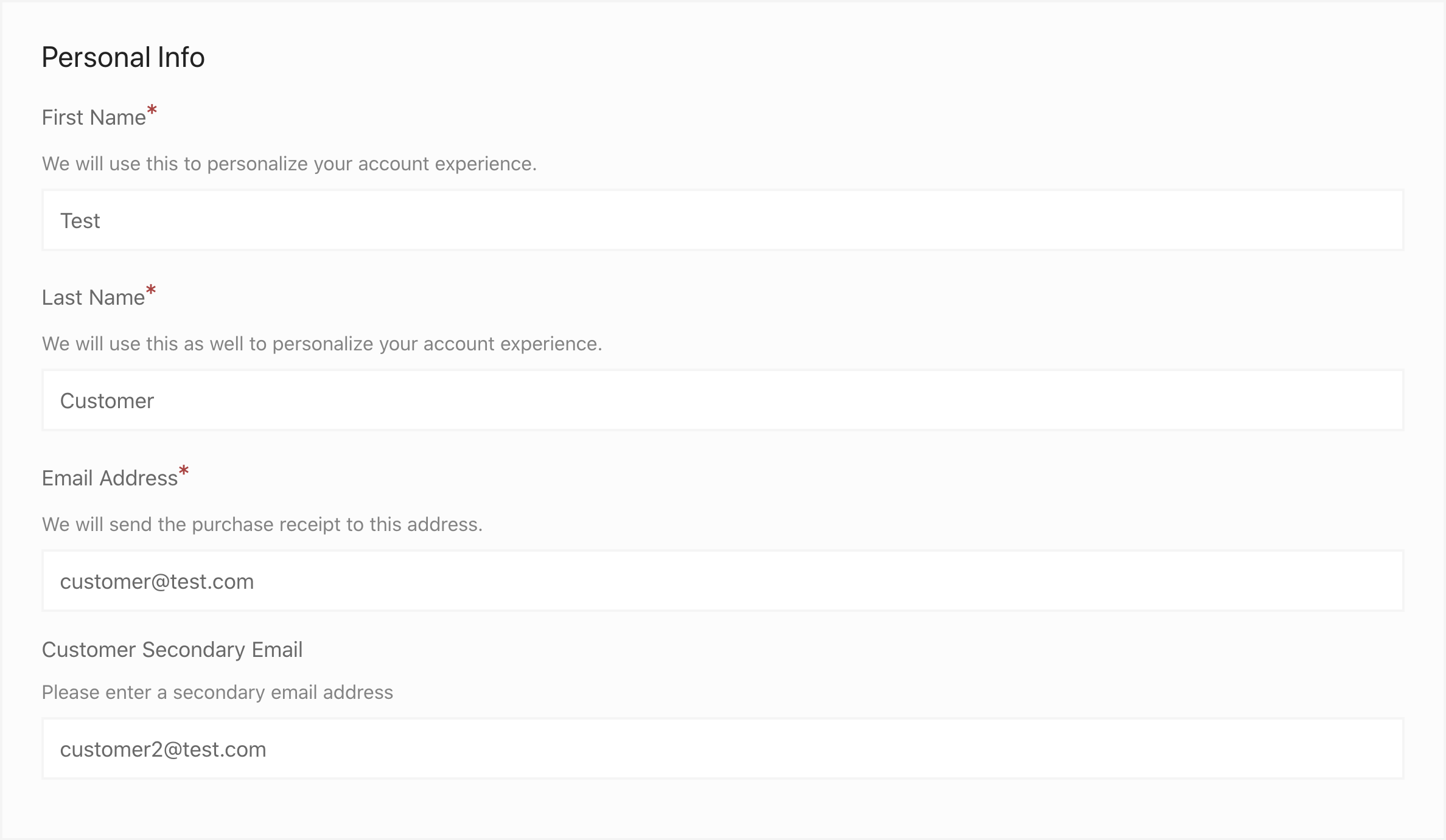 For the examples shown below, we’re adding an email text field called Customer Secondary Email. This first image is an example of the setup for all of the User Meta output examples below.