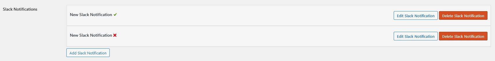 If your site has SSL enabled, you will see some additional options below the created Slack Notifications:
