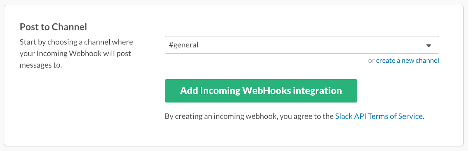 This functionality is based on linking a Slack App to your website. Follow the link to create your own Slack App by clicking the “Create New App” button to get started.