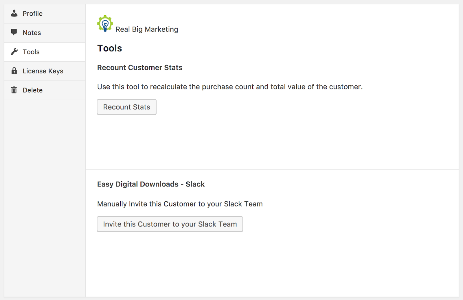 You can also manually invite Customers from their Customer Page under the “Tools” tab and, if you are using the Frontend Submissions extension, Vendors from their Vendor Page under the “Profile” tab in the WordPress Dashboard.