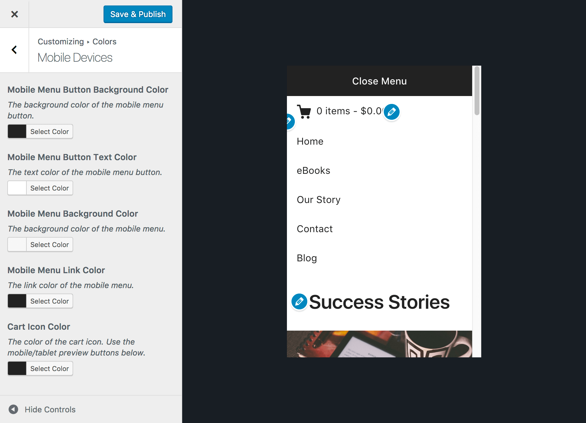 Creating the perfect color scheme for your site has never been easier thanks to the large selection of built-in color options: