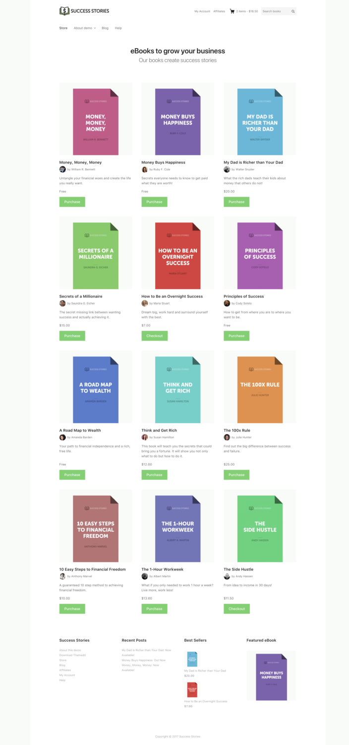 Themedd was created to be a solid starting point for both end users and developers alike. Designed to be clean and simple right out of the box, Themedd makes it quick and easy to set up a store with Easy Digital Downloads to sell your digital products.