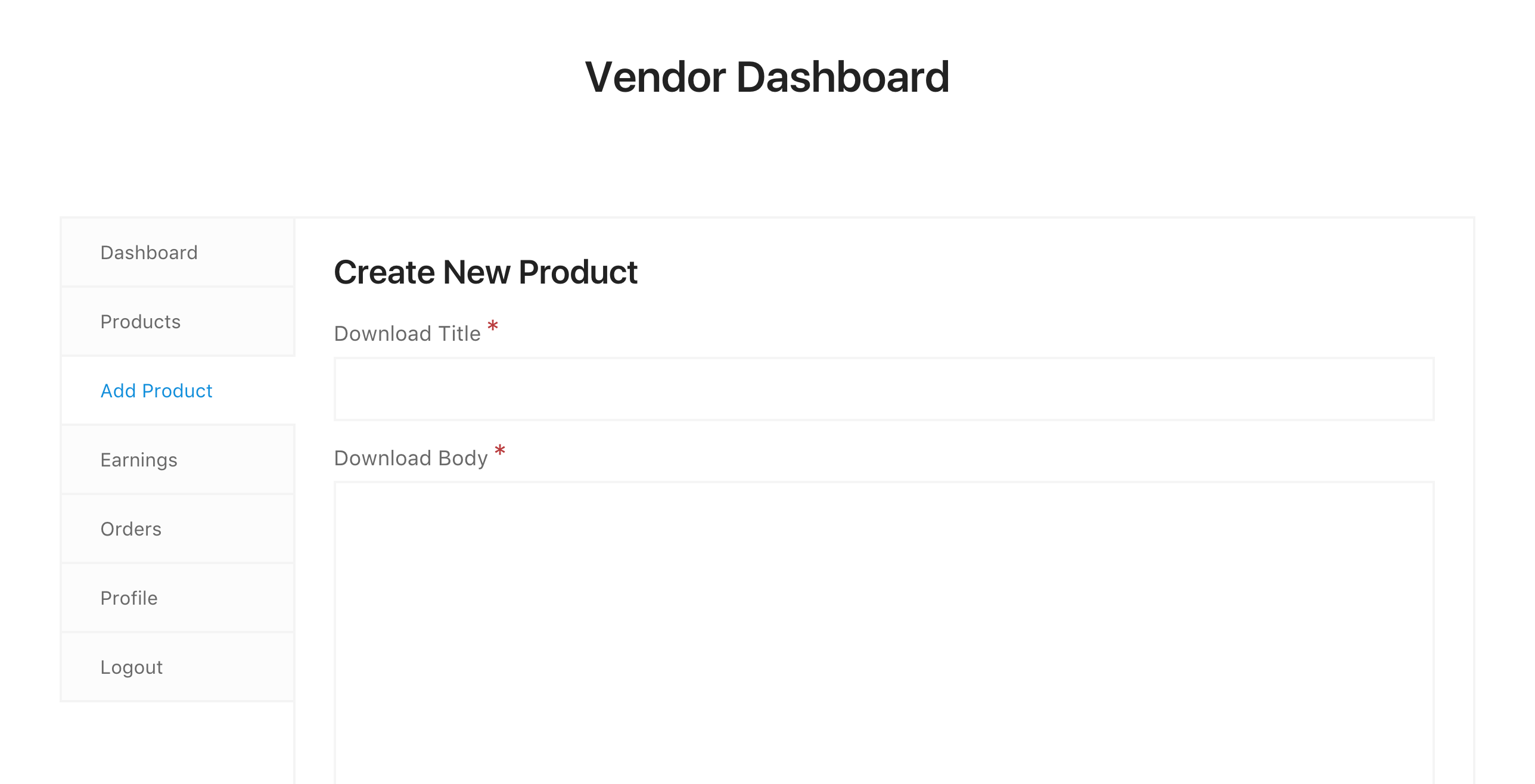 The vendor dashboard's "Add Product" tab in Frontend Submissions