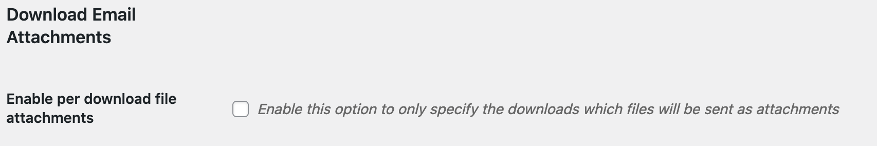 The only option is to enable the functionality on a per download basis. If this option is not enabled then all downloads will have email attachments in place for the file downloads.