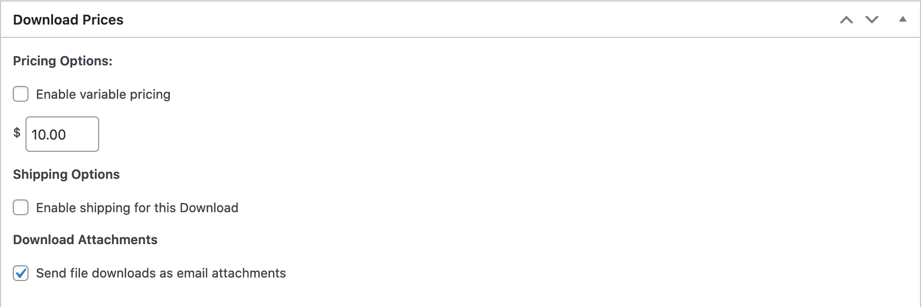 If the above option is enabled, then each download will have an option to enable this functionality, and it will be located in the “Download Prices” area when creating or editing a download product.