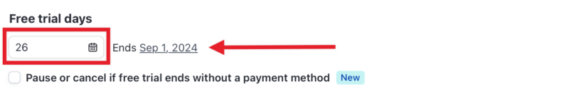 When you input a number of days, Stripe will present the “Ends” date, the customer will get charged on this date.