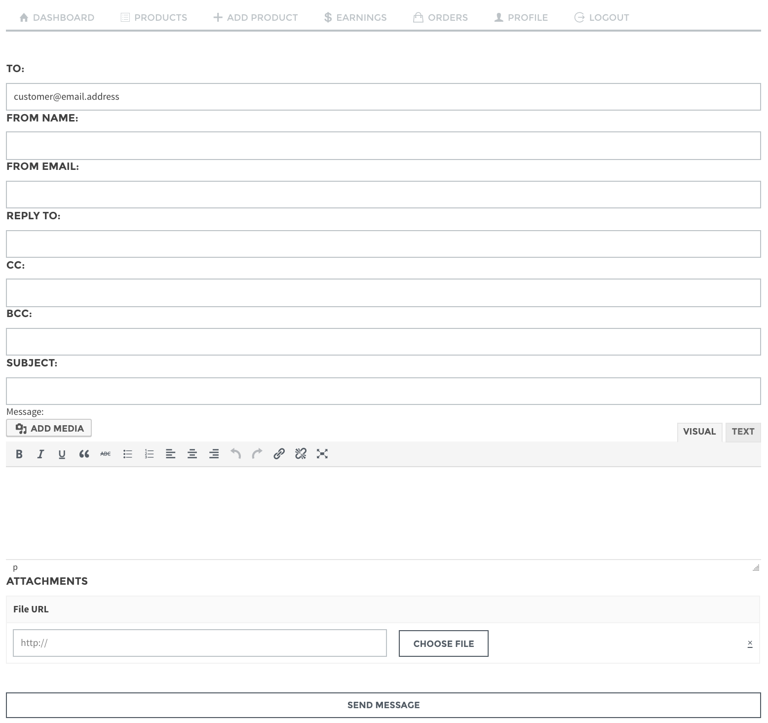 EDD Message does more than just allow store owners to communicate better with customers. Vendors are also given a messaging form for sending unique emails to customers who’ve purchased their products.