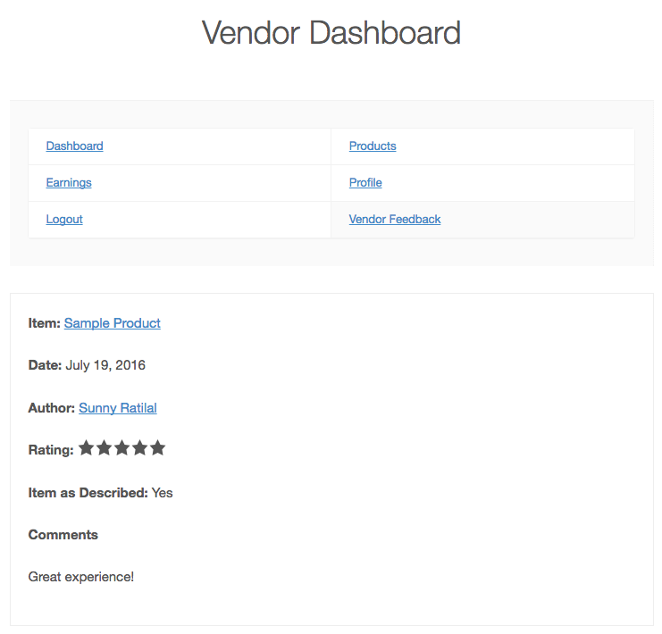 After making a purchase, if any of the products in that purchase were created by a FES vendor, customers can leave feedback for them. This allows store administrators and vendors to easily see what they’ve done well and what could be better.