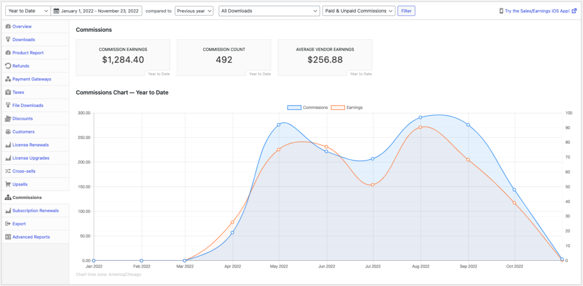 Also included in the Commissions extension, is a new commissions-paid-per-month graph on the Reports page that allows you to see exactly how much you are paying out in commissions over time.