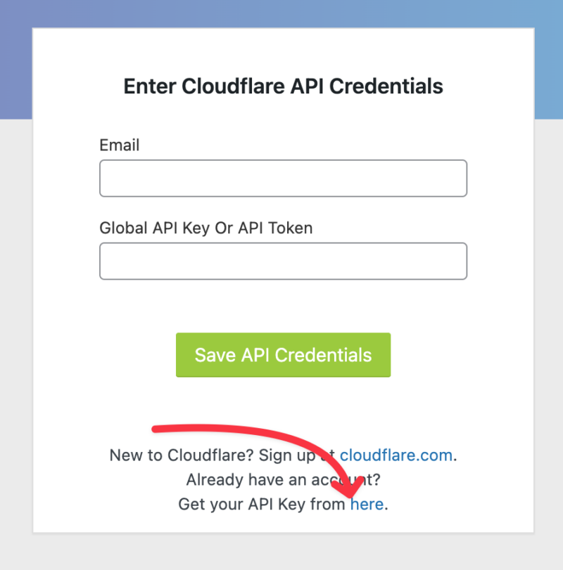 You will need the email address used for your Cloudflare account, as well as your Global API Key, which can be found by clicking on the link below the form
