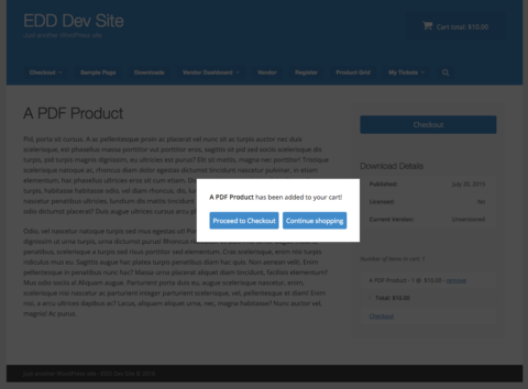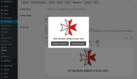 This extension enables a popup window that displays Continue Shopping and Proceed to Checkout buttons after an item is added to the cart. A simple plugin that offers an extremely useful option, letting customers add all the products they want to their cart without being forced to go to the checkout page.