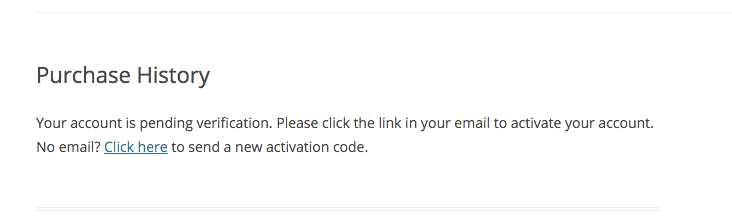 When the customer creates a new WordPress account and they have made a past guest account they’ll see a notice that their account needs to be verified, with a link to send an email for verification.