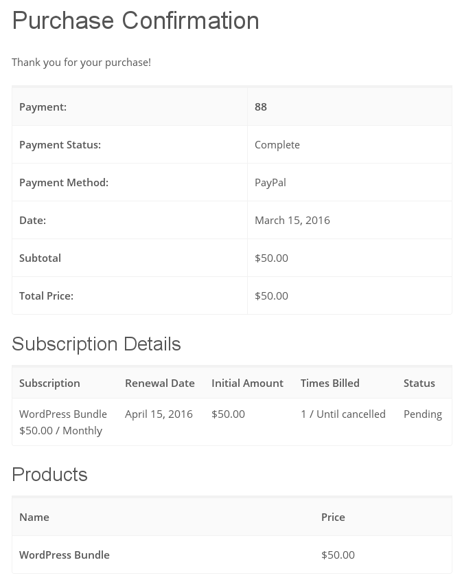 This page is normal so do not be concerned when it looks different than the standard PayPal purchase screen.After a successful signup, your purchase confirmation page should look something like this: