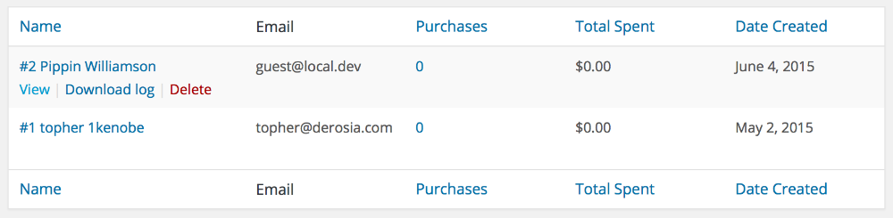 To begin, go to Downloads → Customers and you’ll see a list similar to the one below.