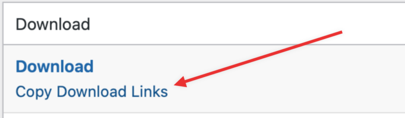 Download Link: You can obtain the customer’s download link(s) by clicking Copy Download Links, which appears when your mouse cursor is near the Download name. A pop-up appears with the download link(s).