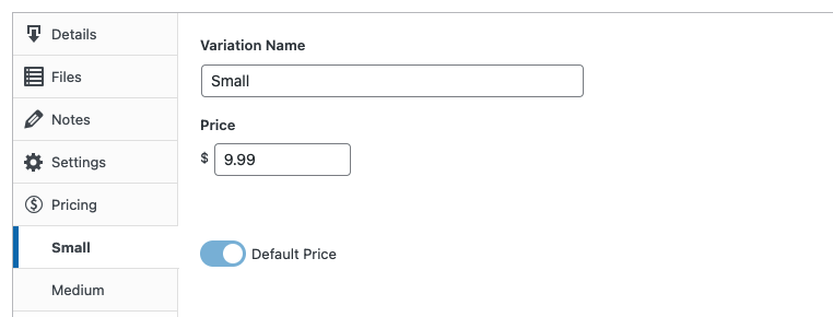 If variable pricing is enabled, a Price Assignment option is added so you can assign files to certain price options.