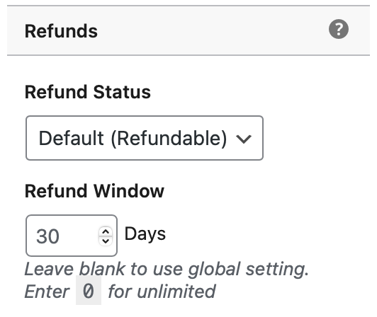 By default, all Products can be refunded by Admins and any Shop User. You can set your individual Products to be Non-refundable. Or, use the Refund Window to limit the number of days this product can be refunded after purchasing. WordPress Admins and Shop Managers can refund products regardless of this status.