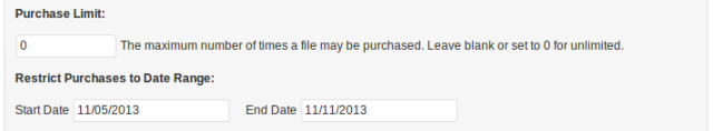 To limit when the product can be purchased, simply set the Start Date and End Date options to the dates you want the Download to be available for purchase.