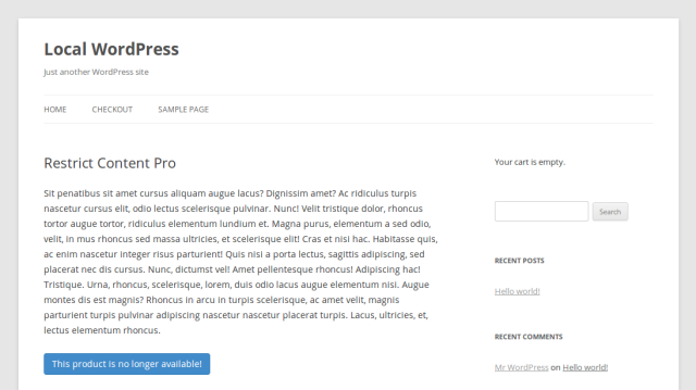 Customers will now only be allowed to purchase the product inside of the specified date range. When viewed outside of the date range, the purchase buttons will look something like this: