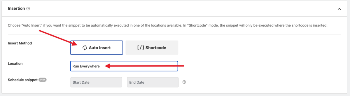 In the Insertion section, confirm Auto Insert and Run Everywhere is seclected.