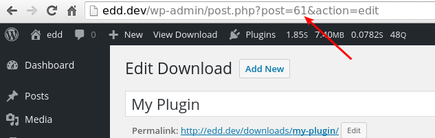 You can find the ID of your download by going to Downloads → All Downloads and then clicking on the product you’re looking for. Then in the URL you’ll find the ID you’re looking for. Example: