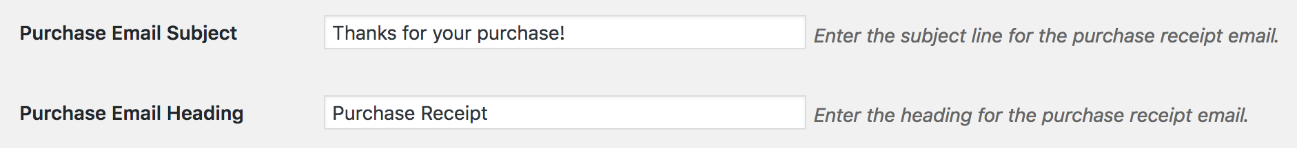 WordPress plugins and themes are tools that allow you to customize the functionality and look of your WordPress website. Many of them include settings and configuration options that allow you to tweak things to your needs. For example, Easy Digital Downloads gives you the ability to control the email subject and heading of the Purchase Receipt email sent to customers after a purchase: