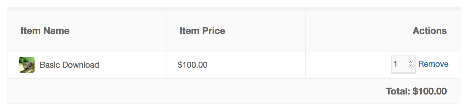 Notice the “Item Name,” “Item Price,” and “Actions” headings that display above the columns in the checkout cart. Those are text strings included in Easy Digital Downloads. However, there are no settings to change that text. So we’ll use
