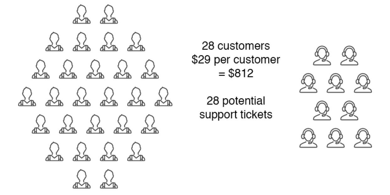 Now consider the effects of pricing that plugin just a bit higher – let’s say $58. You’re showing a more representative value of the available features, and attracting higher quality customers. There are now fewer customers which will result in a lower number of interactions after the sale, and you’re making the same amount of money.