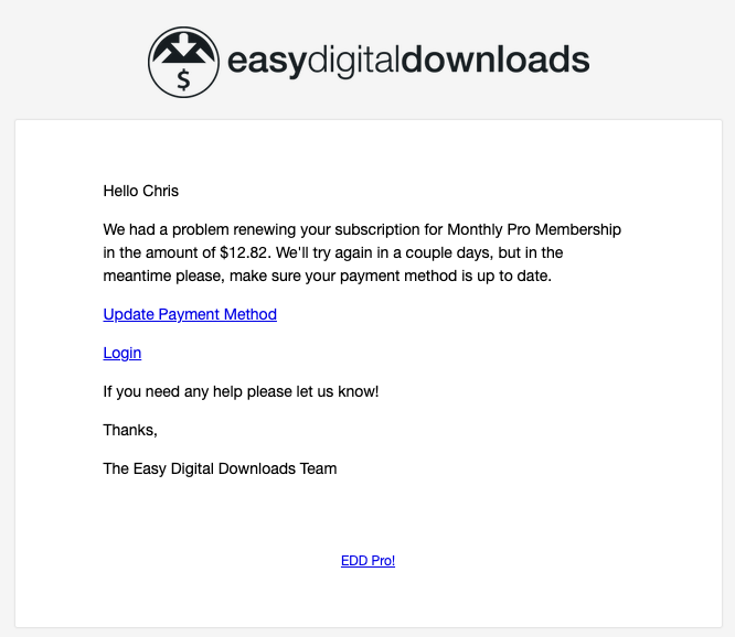 While Easy Digital Downloads already helps you fight this by using smart retry systems available from payment gateways, some failed payments still require your customers to step in.